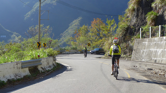 難得衝前面,因此可以拍到還在玉峰溪左岸的車友。
